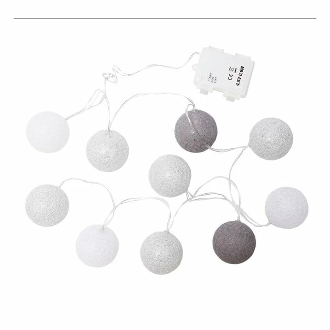 There are 10 cotton ball lights in the set, all of which give off a warm white light. The wire stretches out to 165cm and these will be suitable for being laid out on tables or hung up.