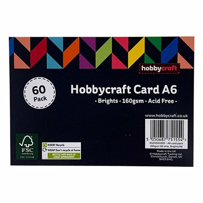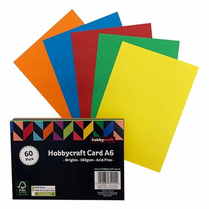 Add glitter, pens, paints, ribbons, stickers, stamps and much more to embellish and enhance your crafting ideas with this simple card as your canvas. Each A6 sheet is 160gsm and there are 60 sheets included in the pack.