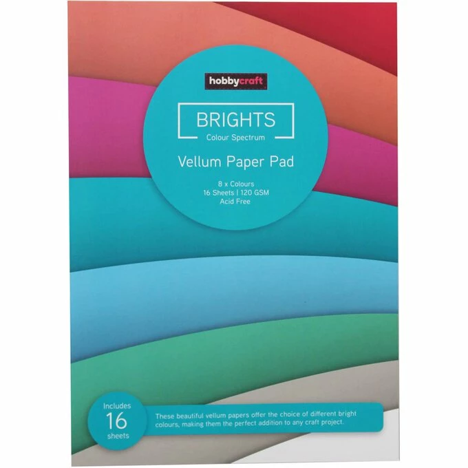 This Bright Vellum Paper Pad helps you add unique details to every craft project! Featuring eight different shades, these sheets provide a translucent quality that is similar to tracing paper. It allows patterns and colours from beneath to come through for a unique effect.