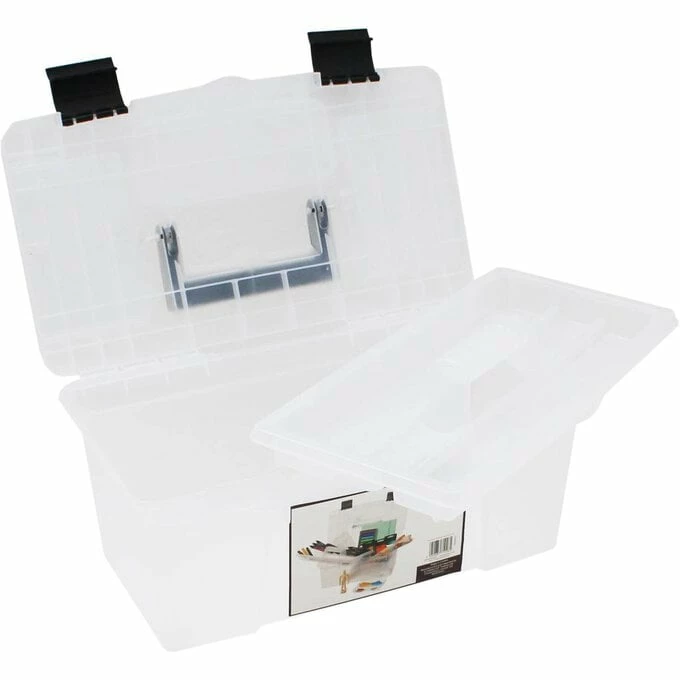 Keep your crafting collection organised – ready for your next project! The Clear Universal Craft Box is the answer. A plastic storage box, this is ideal for crafting at home or on the move, with plenty of room inside for your materials and a handle attached for comfortable carrying.