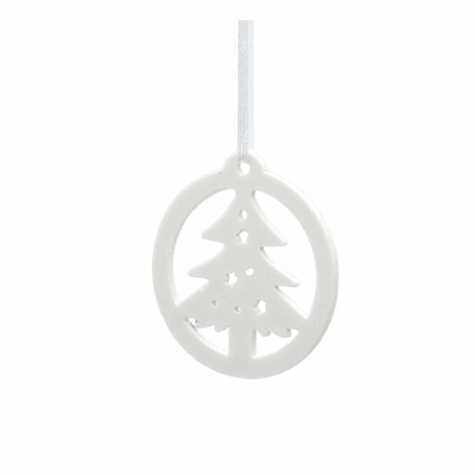 Flat Round Cut-Out Tree Ceramic Decoration 7cm