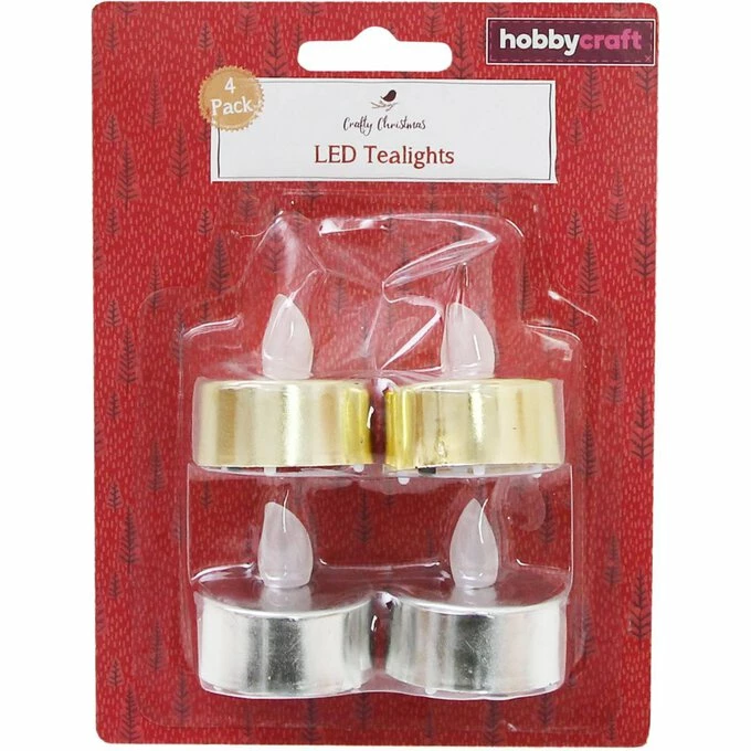 Gold and Silver LED Tea Lights 4 Pack