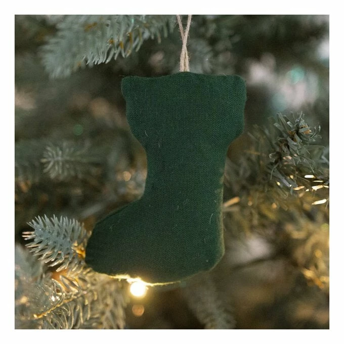 This Green Cotton Stocking Decoration is the perfect base for your most creative Christmas designs! Transform the cotton canvas with embroidery designs or embellishments to transform your tree in style.
