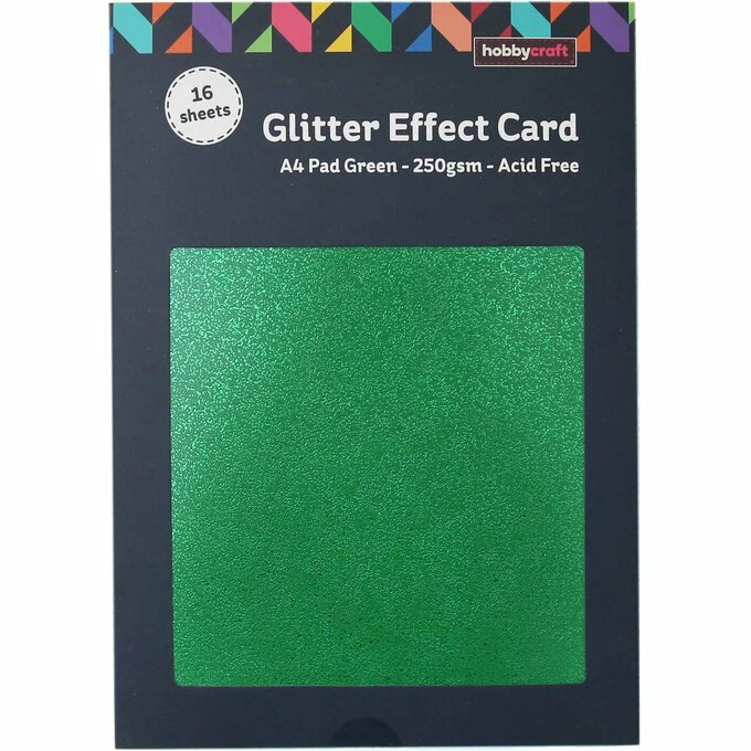 Bring stunning shimmer to every papercraft design using this Green Glitter Effect Card! The sparkling finish is perfect for embellishing cards, gift tags, scrapbook pages and other arts and crafts.