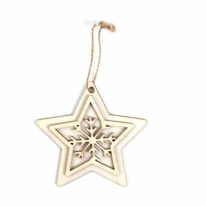 Hanging Wooden Star Decoration 10cm