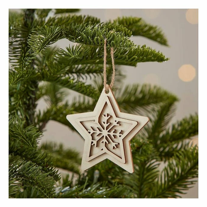 The decoration features a 3D design detail at the centre, ensuring it will stand out wherever you choose to display it. Use paints, glitter, Posca pens and more to bring it to life – you can experiment with using two different colours where the decorative wooden star layers over the base star.