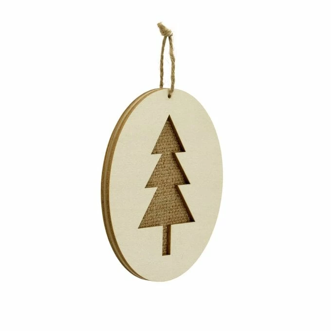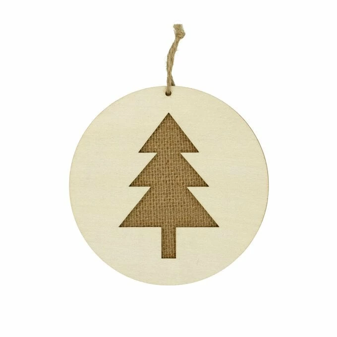 This Hessian Tree Round Wooden Decoration is a fantastic way to personalise your festive décor! Adding dimension, the design features a flat wooden cut-out layer with a hessian fabric backing that comes through to make the cut-out shape stand out.