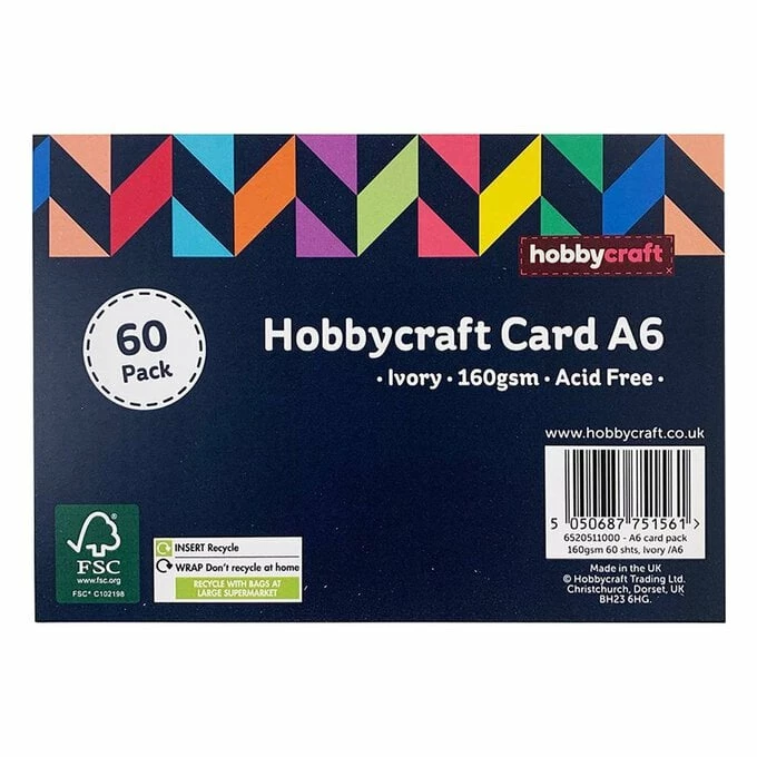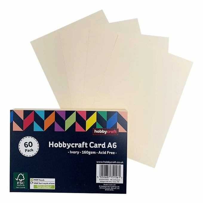 Add glitter, pens, paints, ribbons, stickers, stamps and much more to embellish and enhance your crafting ideas with this simple card as your canvas. Each A6 sheet is 160gsm and there are 60 sheets included in the pack.