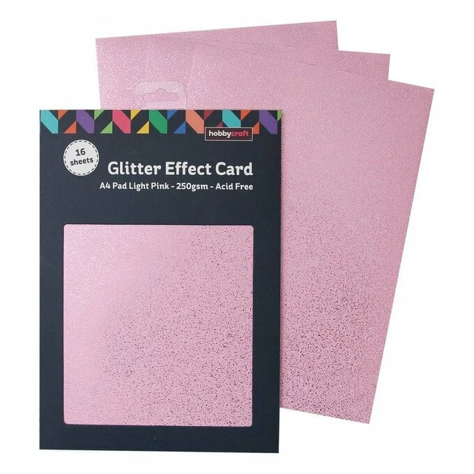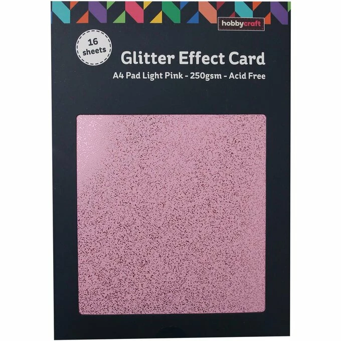 Bring stunning shimmer to every papercraft design using this Light Pink Glitter Effect Card! The sparkling finish is perfect for embellishing cards, gift tags, scrapbook pages and other arts and crafts.