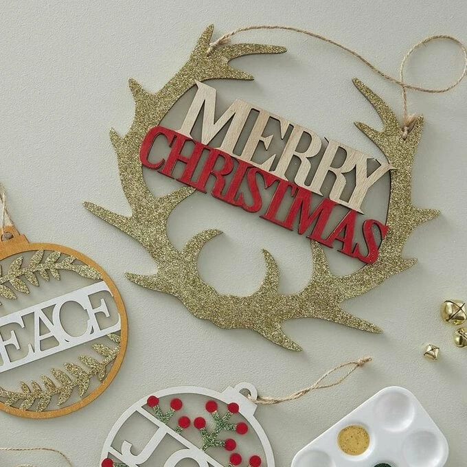 This wooden wreath is easy to personalise with paints, glitter and more.