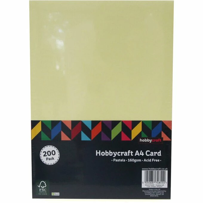 Add glitter, pens, paints, ribbons, stickers, stamps and much more to embellish and enhance your crafting ideas with this simple card as your canvas. Each A4 sheet is 160gsm and there are 200 sheets included in the pack.