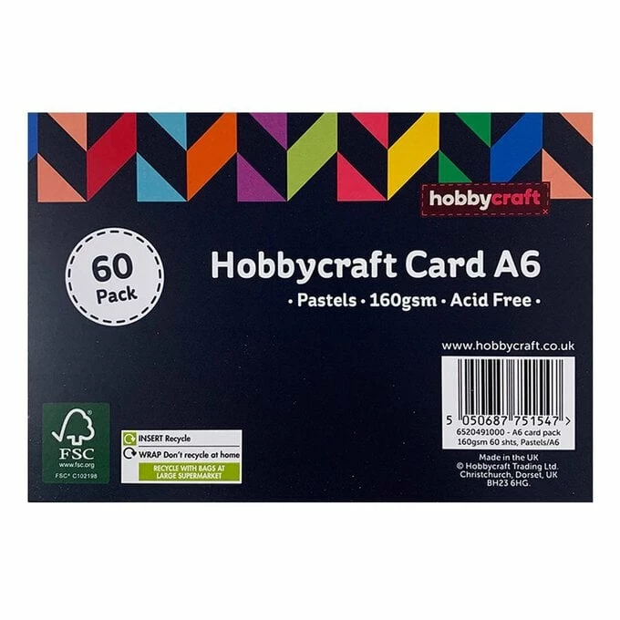 Add glitter, pens, paints, ribbons, stickers, stamps and much more to embellish and enhance your crafting ideas with this simple card as your canvas. Each A6 sheet is 160gsm and there are 60 sheets included in the pack.