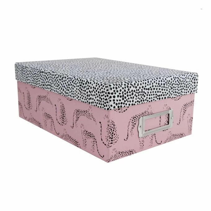 Store photos in style with this Pink Leopard Dot Storage Box!