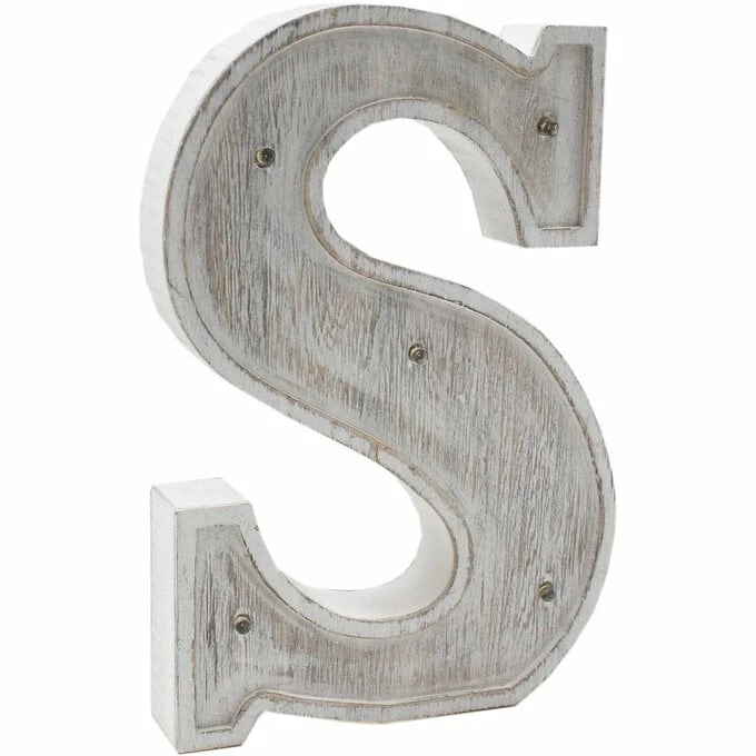White Washed Wooden LED Letter S 21cm