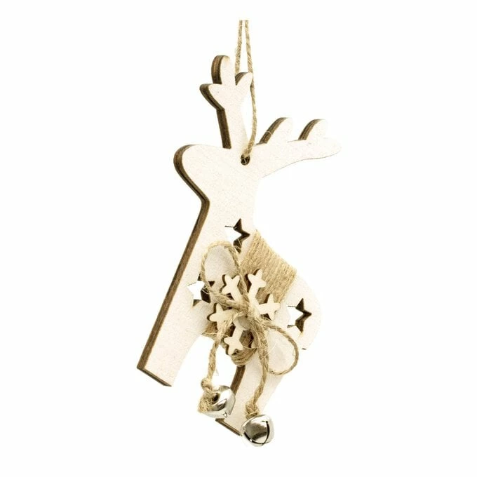 This Wooden Hanging Reindeer with Jute and Bell is the perfect decoration for sprucing up your Christmas tree! The design has a natural wooden finish that will effortlessly embrace rustic style – or you could even personalise with your choice of Christmas colours.