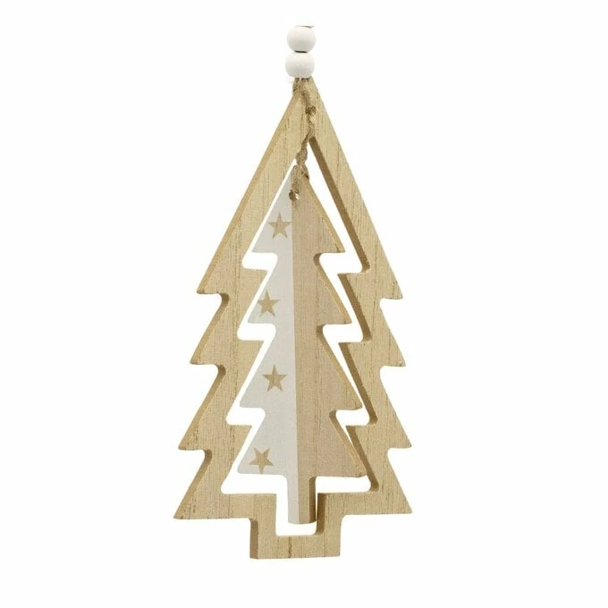 The tree features another smaller tree at its centre, with a white side and a natural side. Much of the decoration has a natural wood finish – but you can easily personalise it with paints or paint markers if you wish to transform it to coordinate with your Christmas theme.