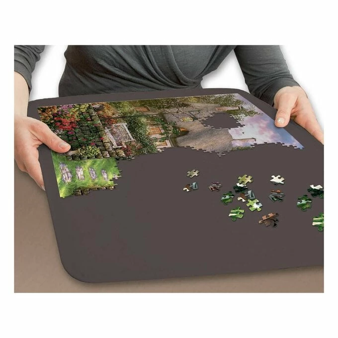 The special lining of the Portapuzzle provides a rigid work surface and because the lining keeps all the pieces firmly in place you can assemble your puzzle at any angle. Individual puzzle pieces or sections can also be picked up and moved around easily.