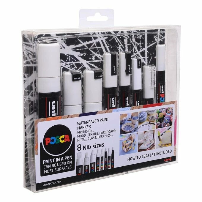 These Uni-ball Posca Marker Pens are the perfect way to make your mark! The water-based pens produce vibrant colour that can be used on almost any surface – including fabrics, glass, metal, paper, card, wood and stone.